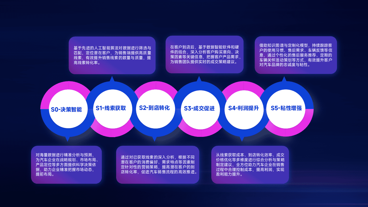 通过拓宽潜在客户来源、、优化线索分配并提高到店转化率,,,以增强销售效率。。同时,,利用线索数据不断优化分析模型,,,有效提升转化率,,,,扩大营销影响力。。。